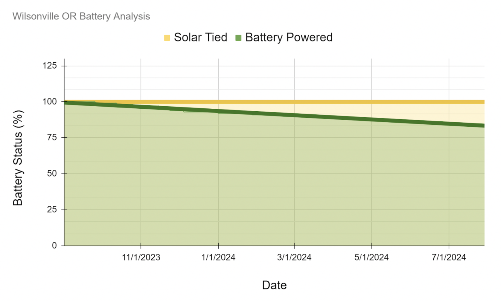 Battery-powered systems: At sites where solar wasn't viable, we used ultra-low consumption battery-powered displays with a 3-5 year lifespan. After a year and a half, the battery life remains over 90%, extending the battery lifespan beyond 5 years and up to 10+ years when paired with solar.